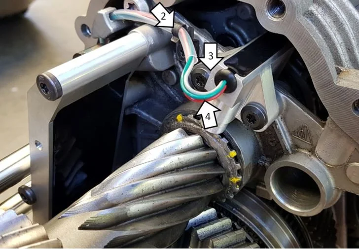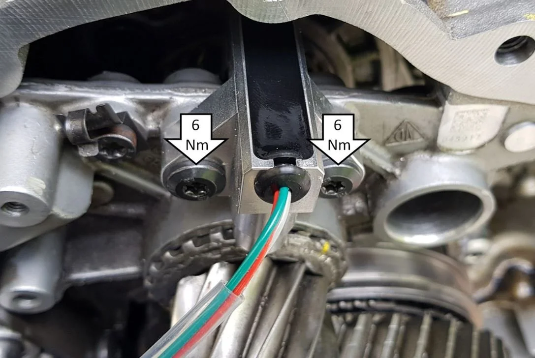 Mount the speed sensor and gently hand tighten both screws. Then torque to 6 Nm (53 lb-in).
