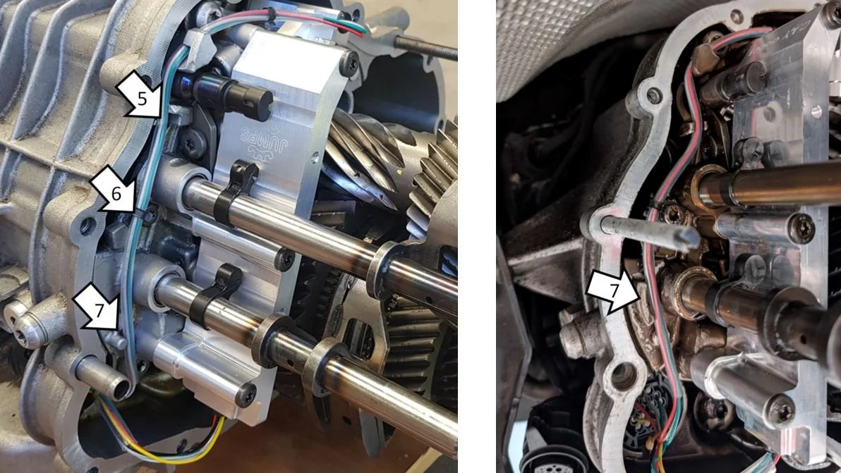 3) After installing the sensor, but before putting the case back on, connect PIWIS and display the Shift Rod actual values. All four distance sensor channels should read less than 1.5mm (+ or -) with all four shift rods in the central position.